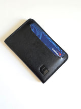 Holds up to 8 cards and folded cash.